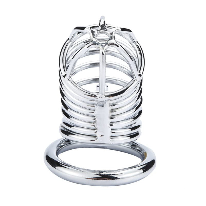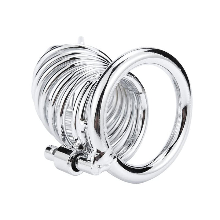 Verstellbarer Keuschheitskäfig aus Edelstahl für Männer: Schweres Metall, verschließbares Hohlraumdesign. Drückt bei Erektion für intensives erotisches Vergnügen.