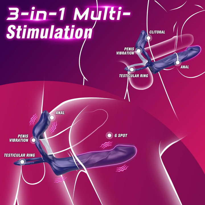 Dieser Strap-On-Dildo-Vibrator vereint Stil und Lust und wurde entwickelt, um sowohl Männer als auch Frauen zu befriedigen. Verwenden Sie ihn häufig als verspieltes Accessoire oder für ein umfassendes sexuelles Erlebnis – ein Muss für Paare, die ultimative Lust suchen.
